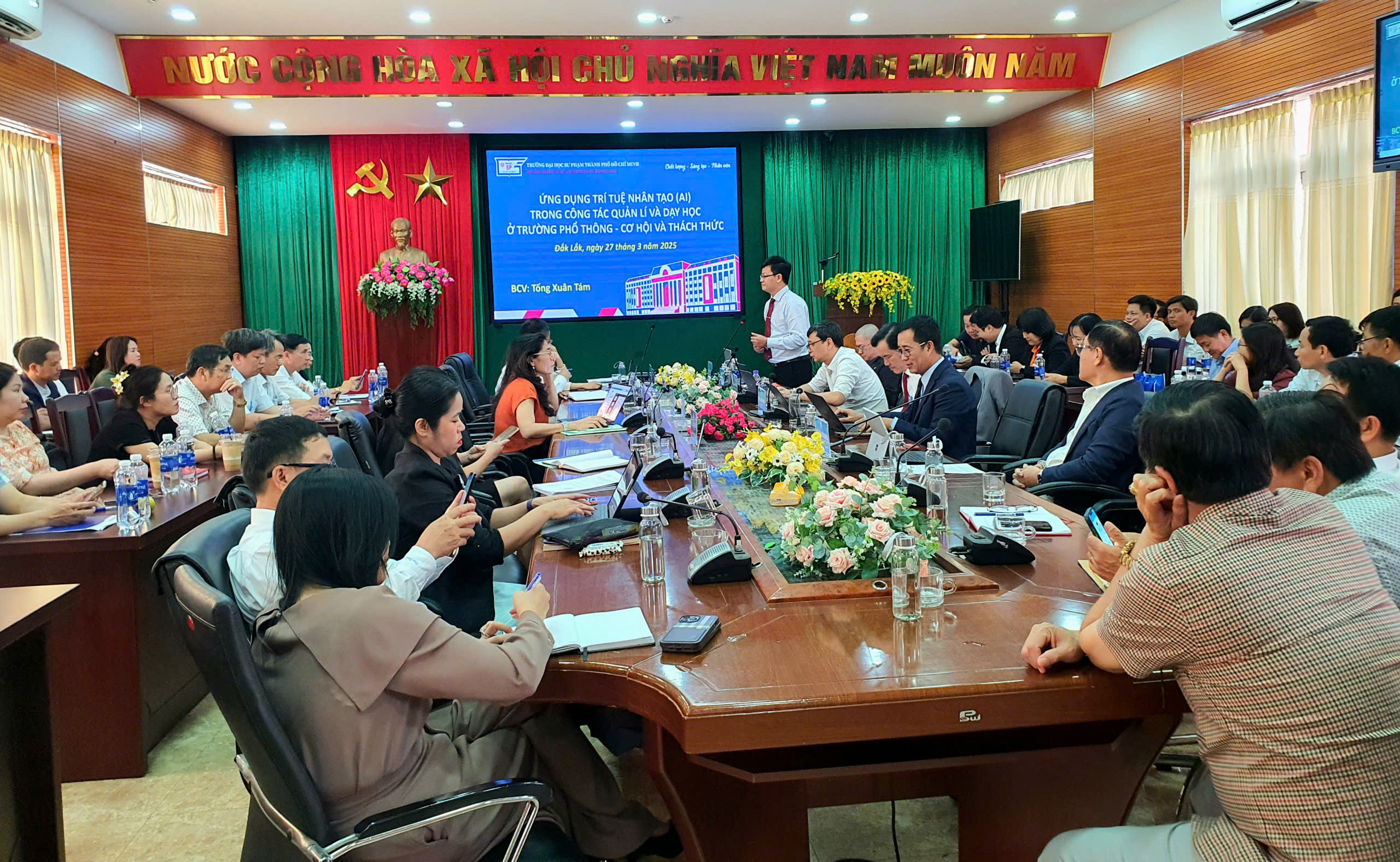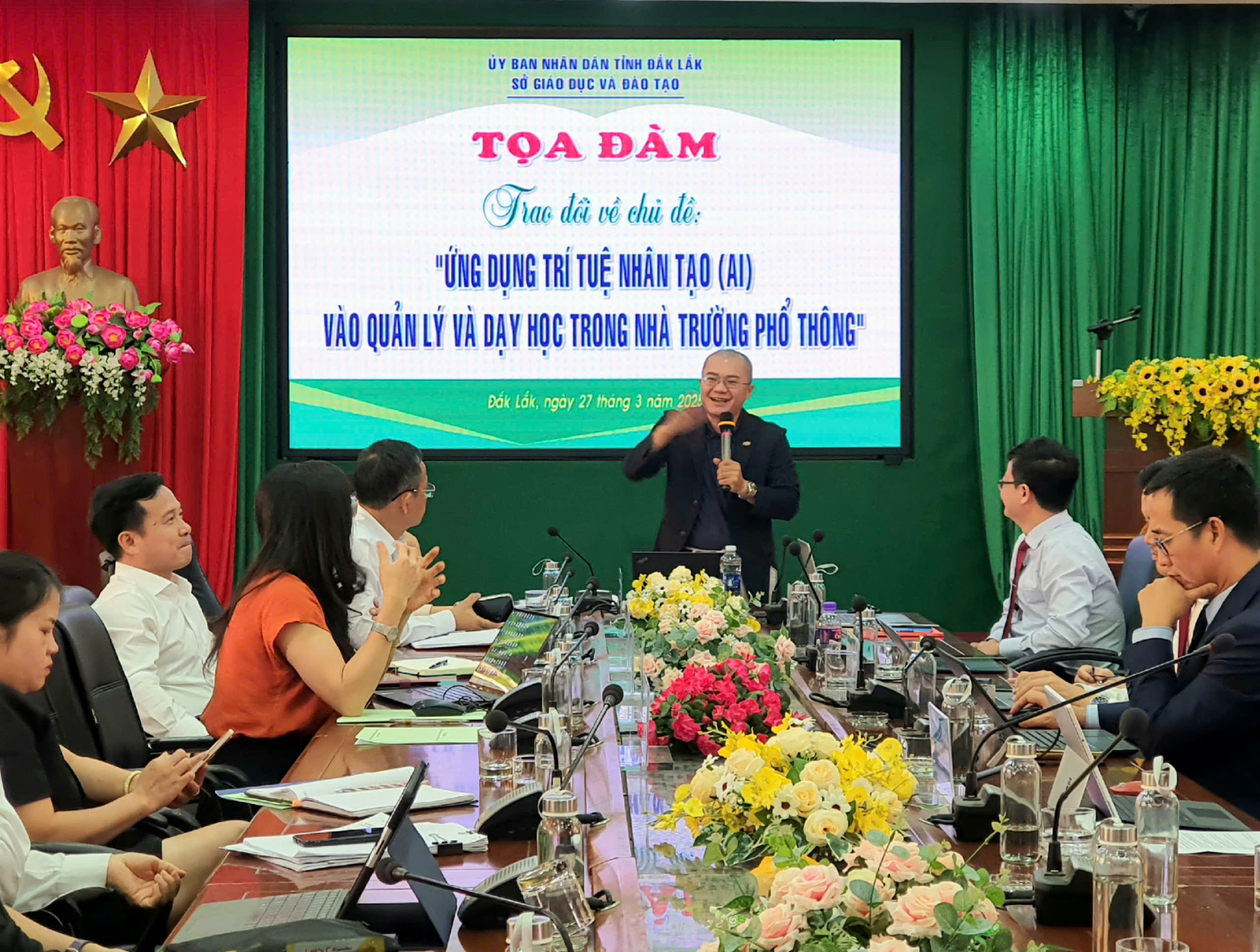 Nhằm nâng cao nhận thức và thúc đẩy việc ứng dụng công nghệ trong giáo dục, chiều ngày 27/3/2025, tại Hội trường A, Sở Giáo dục và Đào tạo (GDĐT) tỉnh Đắk Lắk đã tổ chức tọa đàm với chủ đề: “Ứng dụng trí tuệ nhân tạo (AI) vào quản lý và dạy học trong nhà trường phổ thông”.