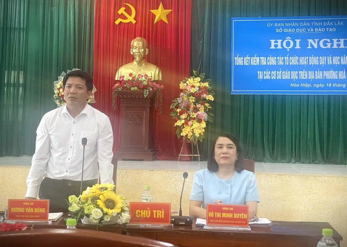 Kết thúc đợt kiểm tra, Đoàn công tác của Sở GDĐT đã phối hợp với Ủy ban nhân dân phường Hòa Hiệp tổ chức Hội nghị tổng kết kiểm tra công tác tổ chức hoạt động dạy và học năm học 2025-2026 tại các cơ sở giáo dục trên địa bàn phường Hòa Hiệp. Tham gia và đồng chủ trì Hội nghị có ông Dương Văn Đông-Đảng ủy viên, Phó Chủ tịch UBND phường Hòa Hiệp; đại diện lãnh đạo các phòng, ban của phường Hòa Hiệp; cán bộ quản lý, Tổ trưởng tổ chuyên môn các trường phổ thông đóng chân trên địa bàn phường.