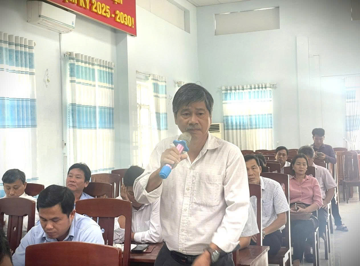 Thầy giáo Trần Hoài Da Vũ-Phó Hiệu trưởng, phụ trách trường Tiểu học Lý Tự Trọng, phường Hòa Hiệp, phát biểu tại Hội nghị