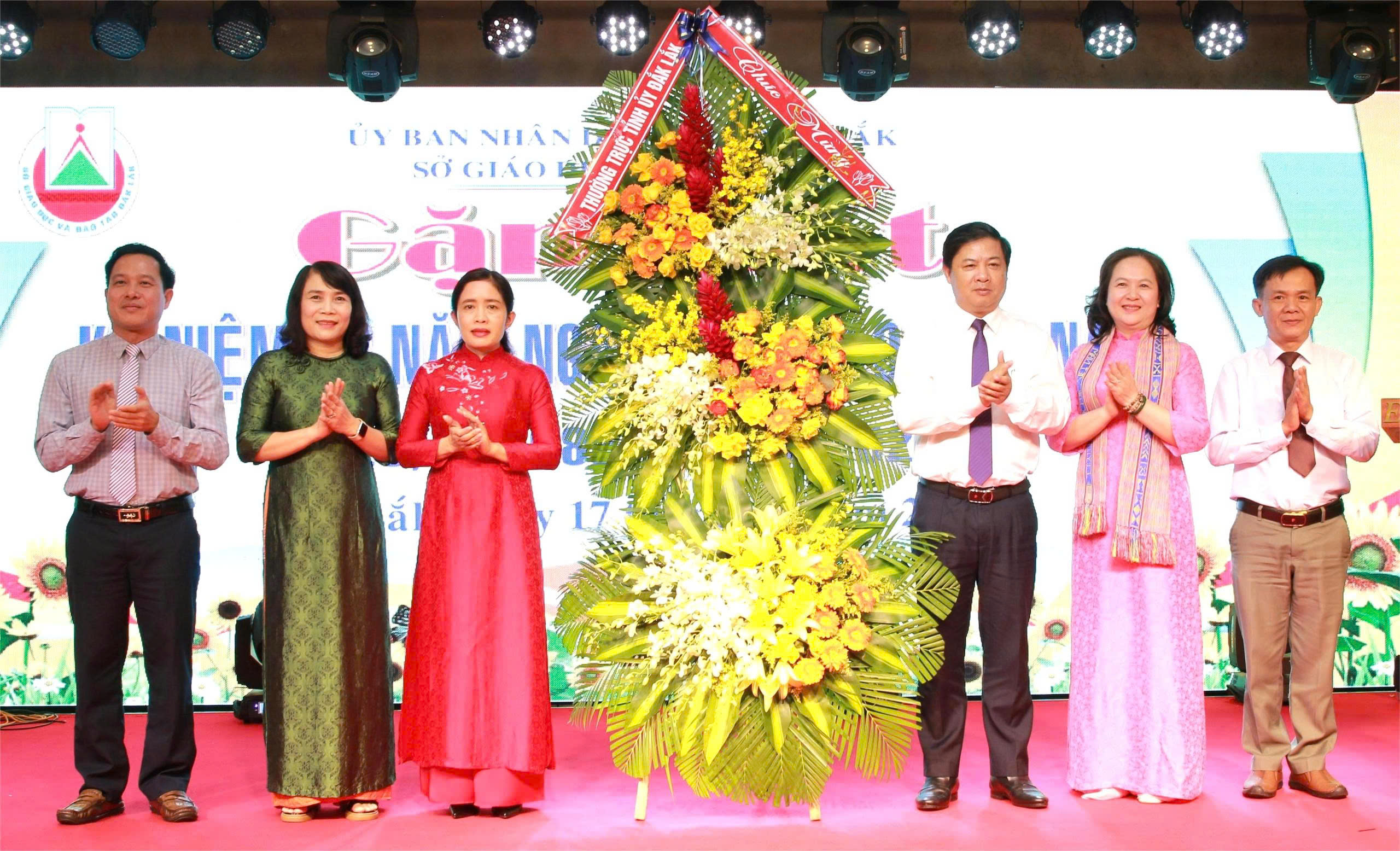 Lãnh đạo tỉnh tặng hoa chúc mừng các Nhà giáo Ưu tú