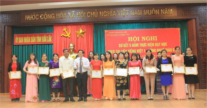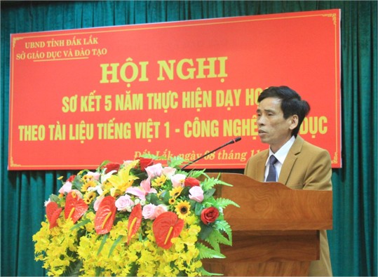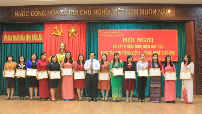 Chiều 8/11, Sở Giáo dục và Đào tạo tổ chức Hội nghị sơ kết 5 năm thực hiện dạy học theo tài liệu Tiếng Việt 1 – Công nghệ giáo dục giai đoạn từ năm học 2013-2014 đến năm học 2017-2018 trên địa bàn tỉnh. Dự Hội nghị có bà H’Yim Kđoh - Phó Chủ tịch UBND tỉnh; ông Nguyễn Cảnh - Phó Trưởng Ban Tuyên giáo Tỉnh ủy; đại biểu Vụ Giáo dục Tiểu học – Bộ GDĐT; ông Thái Văn Tài - Phó Giám đốc Sở GDĐT; lãnh đạo UBND các huyện, xã trên dịa bàn tỉnh; lãnh đạo, chuyên viên các phòng GDĐT cấp huyện và các trường có tổ chức dạy học theo tài liệu Tiếng Việt 1 - Công nghệ giáo dục.