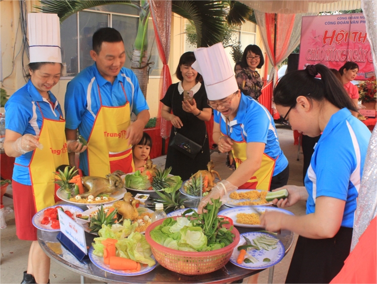 Tại Hội thi ẩm thực, các thành viên của 5 tổ Công đoàn đã thể hiện năng khiếu trong việc chế biến các món ăn mang đậm hương vị truyền thống của người Việt; thể hiện sự khéo léo trong việc trang trí cho các món ăn thêm đẹp, sinh động, hấp dẫn và chuyển tải được thông điệp về truyền thống đoàn kết, yêu thương của dân tộc Việt Nam.