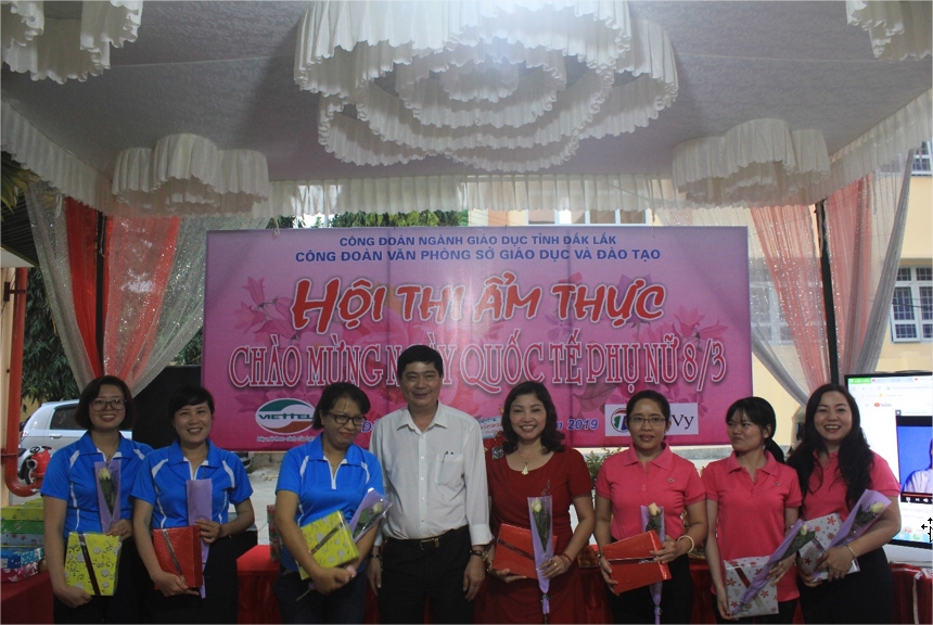 Lãnh đạo Sở GDĐT tặng quà cho nữ công của Sở