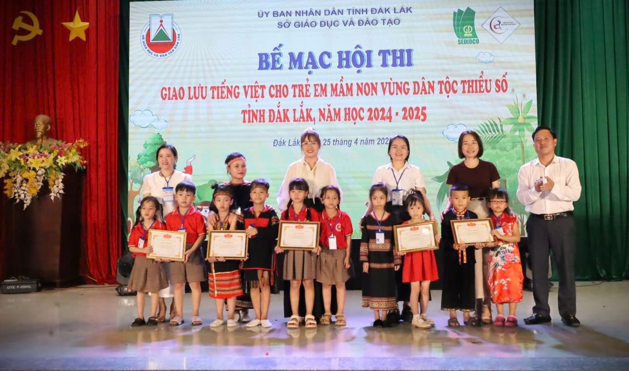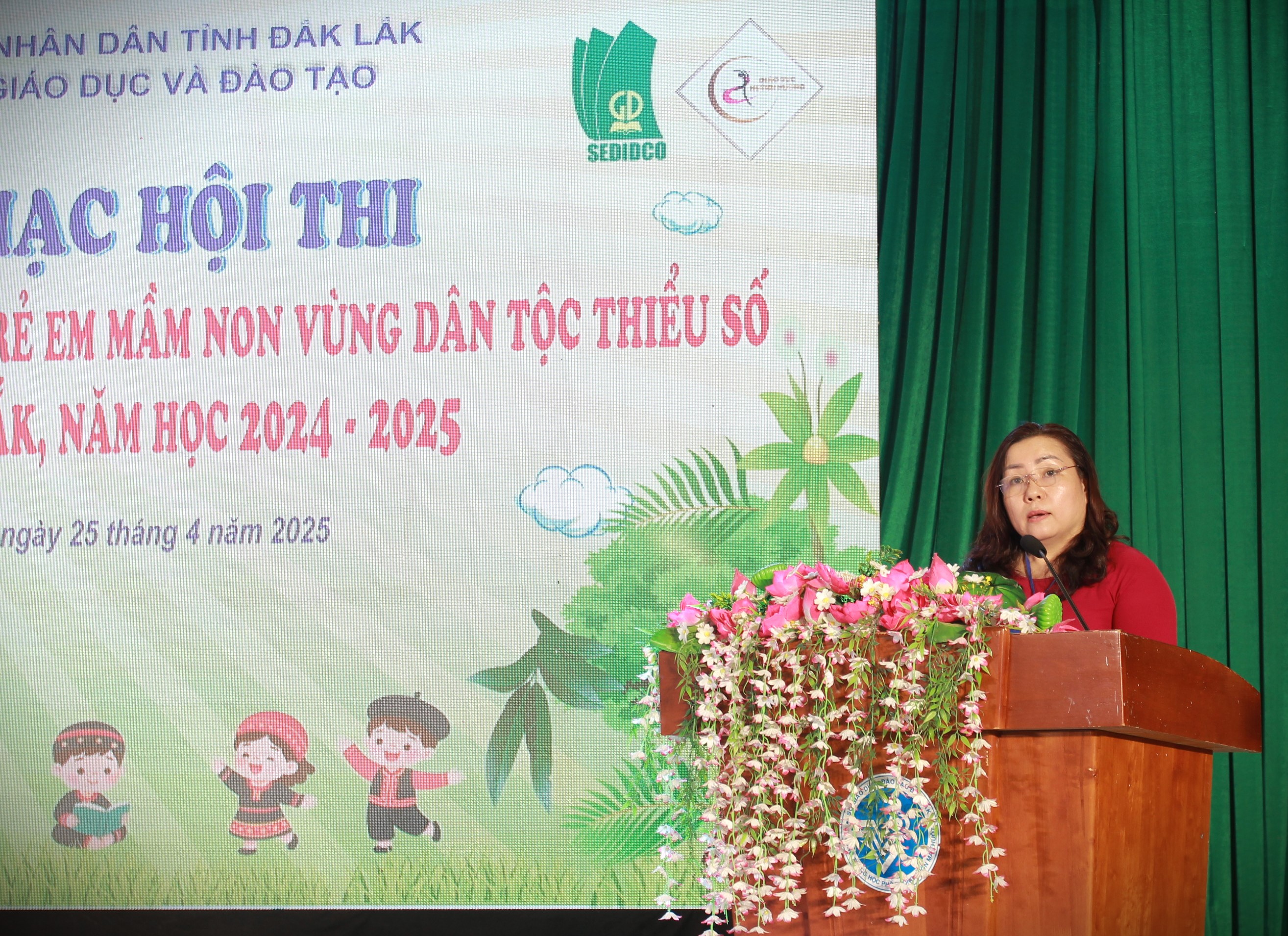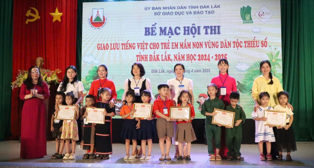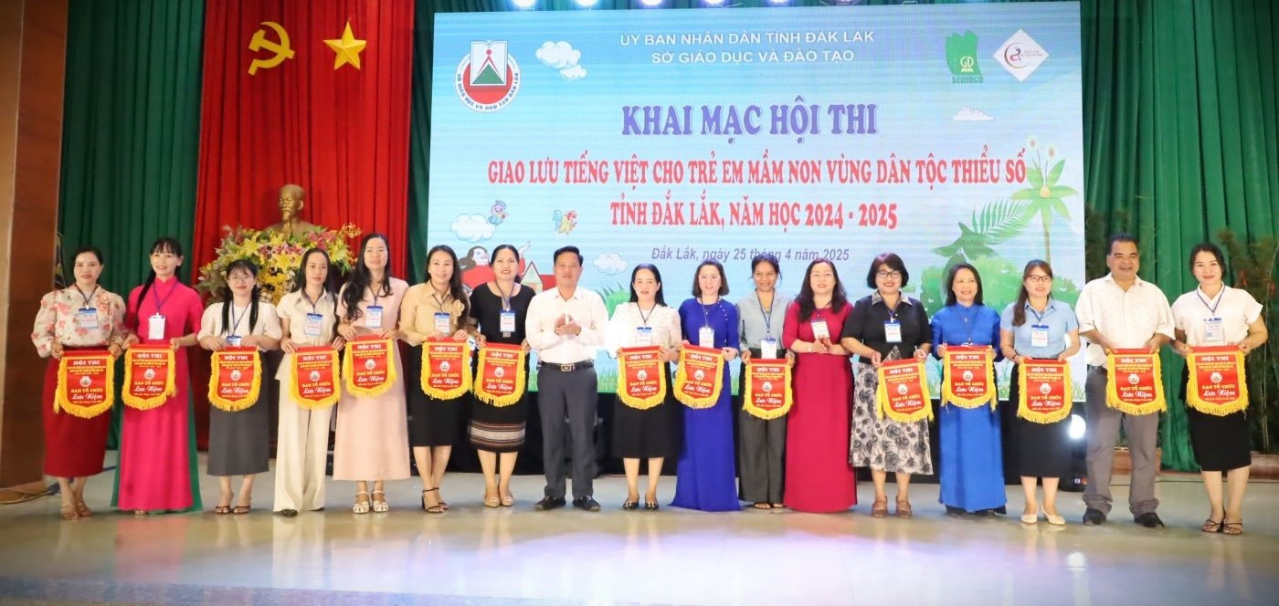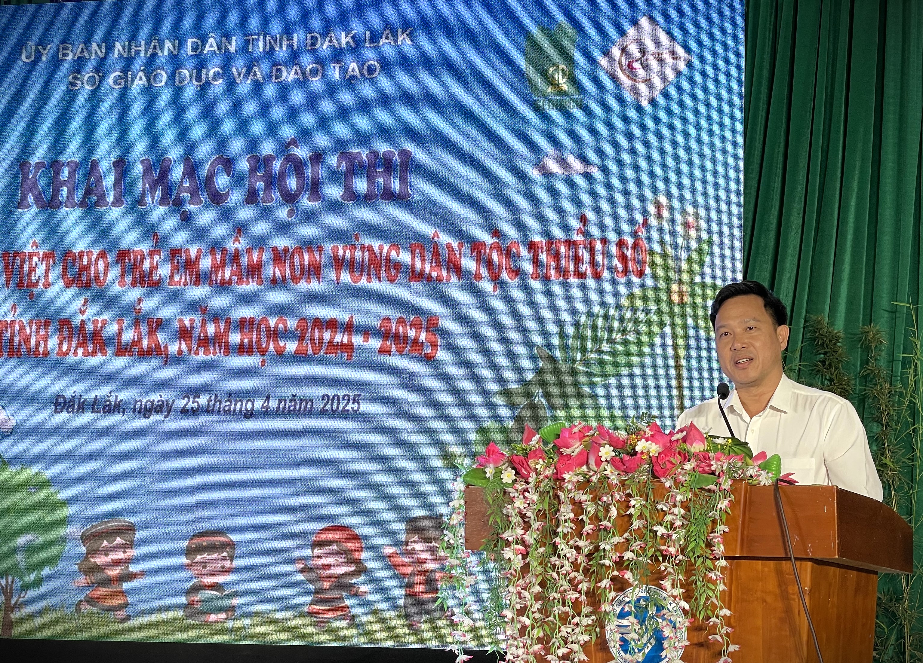 Ngày 25/4, Sở Giáo dục và Đào tạo (GDĐT) tổ chức khai mạc Hội thi Giao lưu tiếng Việt cho trẻ mầm non vùng dân tộc thiểu số tỉnh Đắk Lắk, năm học 2024 – 2025. Hội thi được tổ chức nhằm tuyên truyền, giáo dục cho trẻ giữ gìn bản sắc văn hóa của địa phương, đặc trưng vùng miền, giữ gìn tiếng mẹ đẻ; tăng cường tiếng Việt cho trẻ mẫu giáo vùng dân tộc thiểu số, góp phần phát triển kỹ năng giao tiếp bằng tiếng Việt, phát triển ngôn ngữ, tình cảm xã hội, giúp trẻ mạnh dạn, tự tin khi giao tiếp và để chuẩn bị tốt hành trang cho trẻ vào học lớp 1.