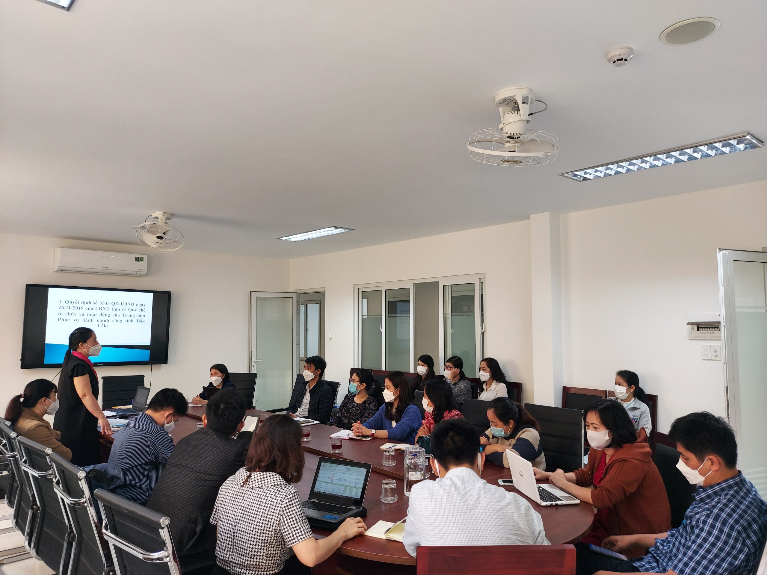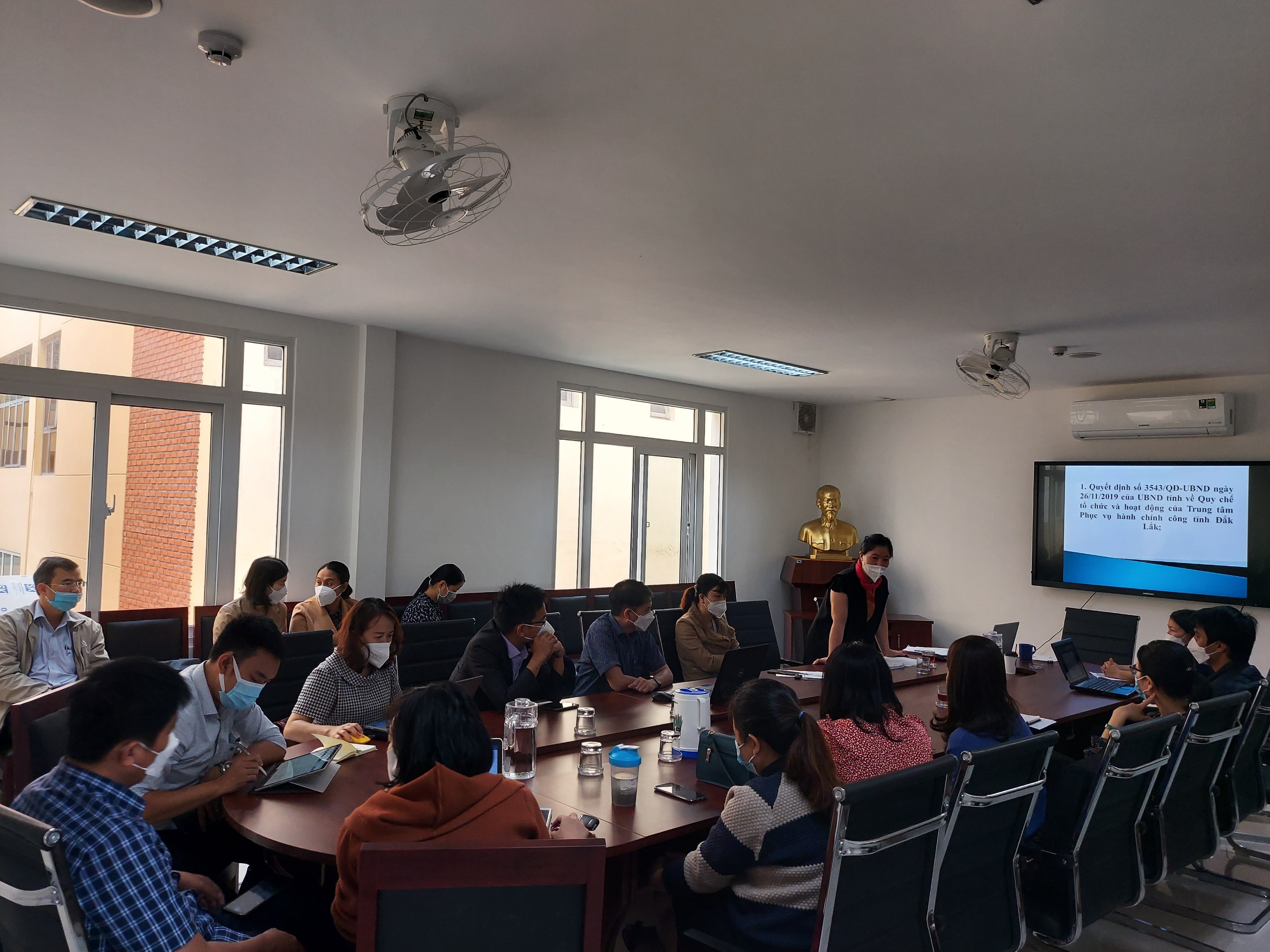 Sáng ngày 22/12/2021, Văn phòng UBND tỉnh Đắk Lắk tổ chức tập huấn Nghiệp vụ tiếp nhận và trả kết quả giải quyết thủ tục hành chính (TTHC); kỹ năng giao tiếp hành chính phục vụ hoạt động của Trung tâm Phục vụ Hành chính công tỉnh Đắk Lắk. Tham dự tập huấn có Bà Hoàng Thị Tâm, Phó Giám đốc Trung tâm phục vụ Hành chính công và 27 đại biểu là công chức, viên chức thuộc các Sở, ngành của tỉnh.