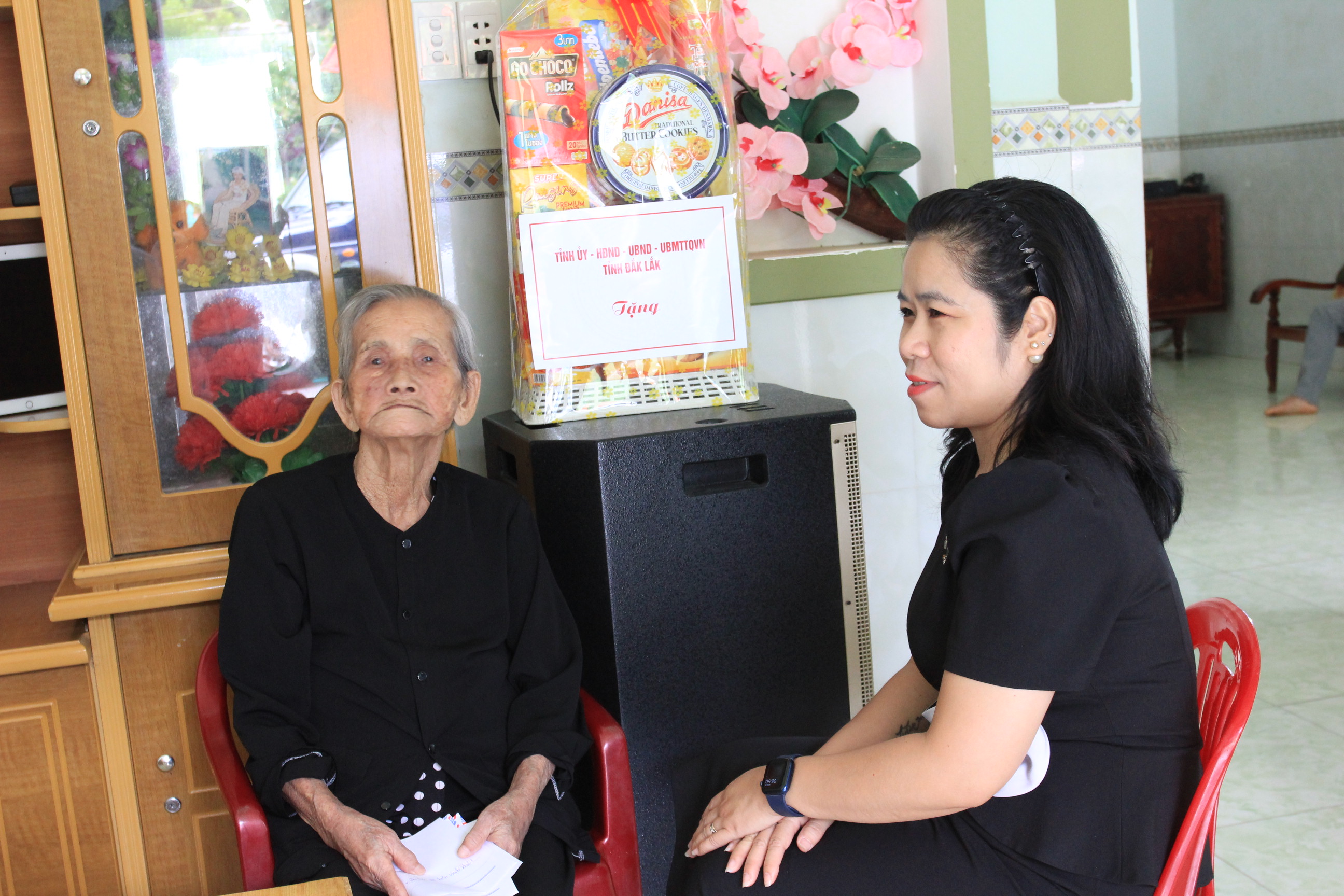 Bà Krông Ái Hương Lan - Phó Trưởng phòng Giáo dục trung học - Giáo dục thường xuyên Sở GDĐT thăm hỏi sức khoẻ của Mẹ và gia đình