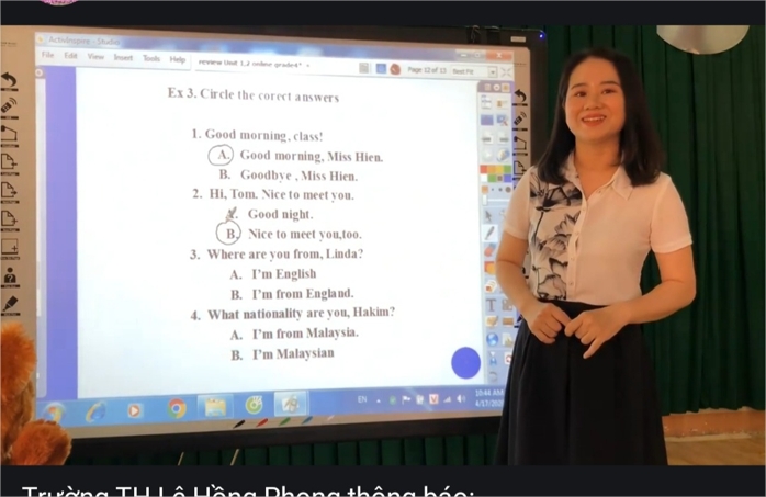 Cô Nguyễn Thanh Hiền, giáo viên trường Tiểu học Lê Hồng Phong, Tp Buôn Ma Thuột dạy trực tuyến