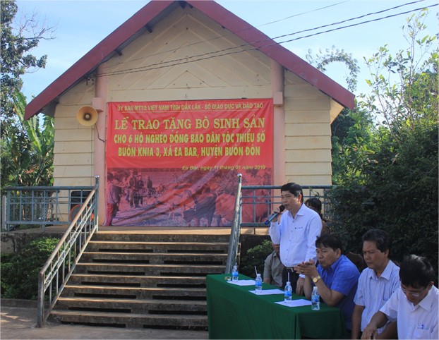Chiều ngày 11/01/2019, Sở Giáo dục và Đào tạo (GDĐT) phối hợp Ủy ban MTTQ Việt Nam tỉnh Đắk Lắk tổ chức trao tặng bò cái giống sinh sản cho Buôn Knia 3, xã Ea Bar, huyện Buôn Đôn.