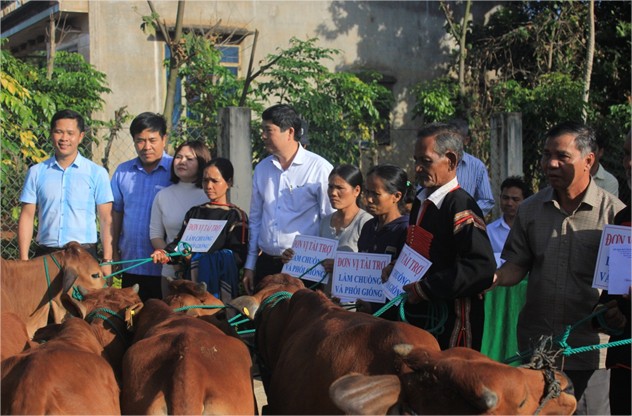 Trao tặng bò giống sinh sản cho các hộ nghèo Buôn kết nghĩa Knia 3
