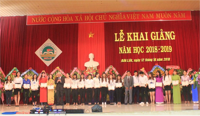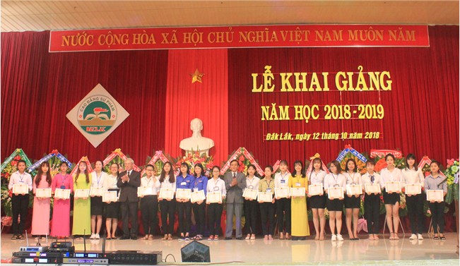 Để ghi nhận và tuyên dương thành tích học tập, rèn luyện của các tập thể lớp và sinh viên trong năm học 2017-2018, Trường Cao đẳng Sư phạm Đắk Lắk đã trao Giấy khen tặng 03 HSSV xếp loại Xuất sắc, 48 HSSV xếp loại Giỏi, trao 295 suất học bổng, miễn học phí cho 08 HSSV thuộc diện dân tộc thiểu số hộ nghèo, con thương binh, bệnh binh. Bên cạnh đó, Hội cựu sinh viên của trường cũng đã trao 08 suất học bổng (mỗi suất trị giá 500.000đ) cho các em có hoàn cảnh khó khăn vươn lên trong học tập.