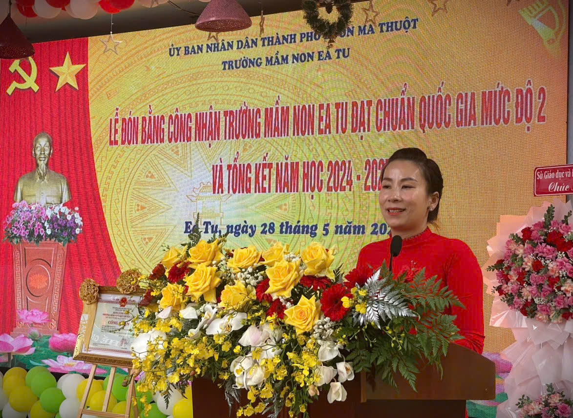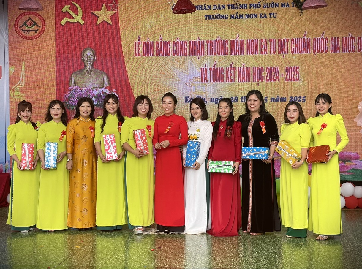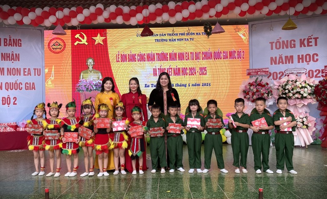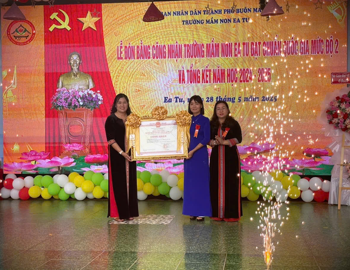 Sáng ngày 28/5/2025, Trường Mầm non Ea Tu, thành phố Buôn Ma Thuột, long trọng tổ chức Lễ Tổng kết năm học 2024 – 2025 và đón nhận Bằng công nhận đạt chuẩn quốc gia mức độ 2.