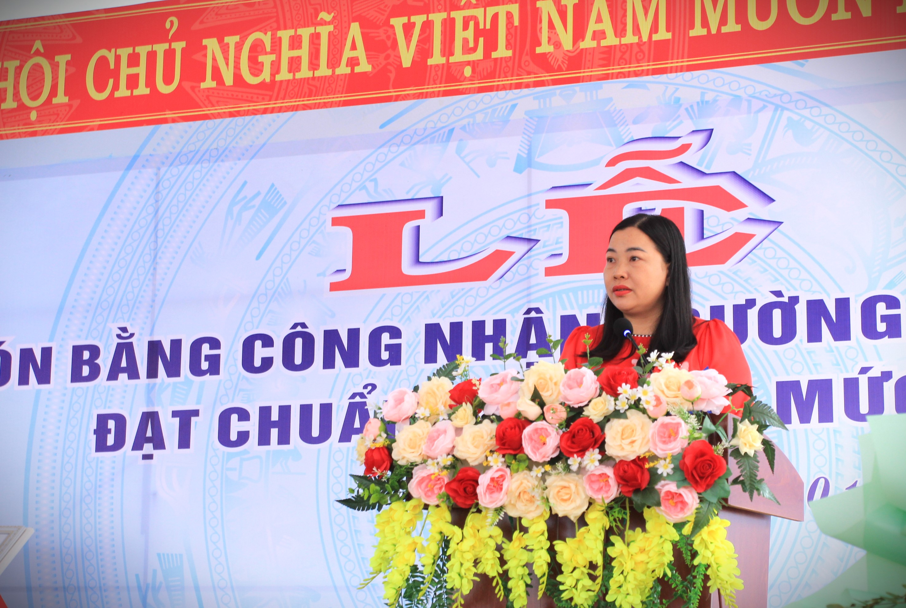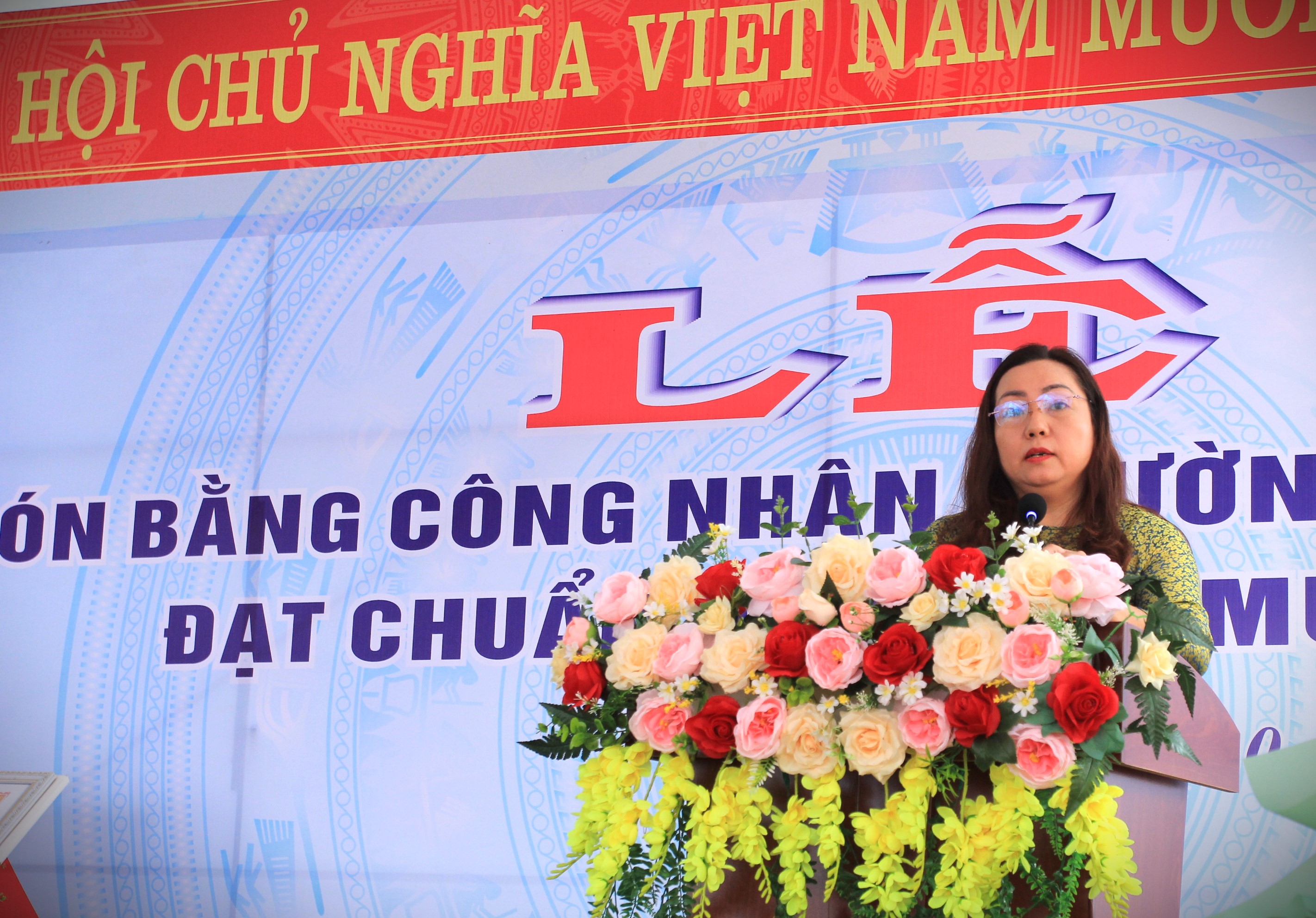 Bà Võ Thị Phượng – Phó Trưởng phòng, phụ trách phòng GDMN-GDDT công bố Quyết định của UBND tỉnh công nhận trường Mầm non Phong Lan đạt chuẩn quốc gia mức độ 1