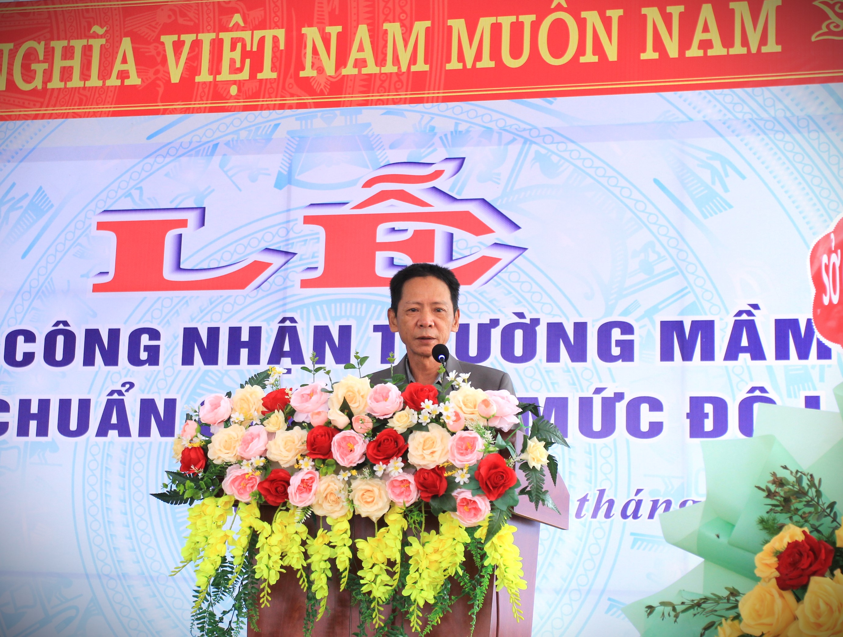 Phát biểu tại buổi lễ ông Trần Đức Lương - Ủy viên Ban thường vụ huyện ủy, Phó Chủ tịch Thường trực UBND huyện Ea Kar ghi nhận và biểu dương những thành tích và quá trình xây dựng trường đạt chuẩn quốc gia của tập thể hội đồng sư phạm nhà trường. Phó chủ tịch UBND huyện Ea Kar chia sẻ “từ những năm đầu thành lập cơ sở vật chất của trường còn thiếu thốn, tạm bợ, nay nhà trường đã từng bước cải tạo, tu sửa về cơ sở vật chất cũng như chất lượng đội ngũ và đạt được nhiều thành tích đáng kể trong công tác chăm sóc, nuôi dưỡng và giáo dục trẻ mầm non. Từ khi thành lập trường đến nay, nhà trường luôn duy trì tốt các hoạt động nuôi dưỡng, chăm sóc, giáo dục trẻ. Cơ sở vật chất, trang thiết bị dạy học đầy đủ với các khối phòng hành chính, quản trị, các phòng chức năng, nhà bếp được trang bị đúng theo quy định; thư viện nhà trường đảm bảo có nguồn tài liệu, sách hướng dẫn, sách tham khảo, sách truyện, tranh…”. Với kết quả trường đạt chuẩn quốc gia mức độ 1, đây là niềm tự hào, sự động viên khích lệ to lớn đối với cán bộ, giáo viên và học sinh nhà trường, đồng thời, góp phần vào thành tích chung về giáo dục và đào tạo, xây dựng nông thôn mới của huyện nhà.