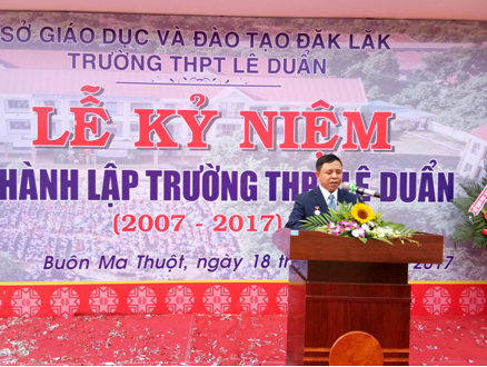Sáng ngày 18/11/2017, Trường THPT Lê Duẩn tổ chức Lễ kỷ niệm 10 năm ngày thành lập. Tham dự có bà H’ Yim Kđoh – Phó Chủ tịch UBND tỉnh; lãnh đạo Công đoàn ngành giáo dục tỉnh; lãnh đạo các phòng chuyên môn, nghiệp vụ Sở GDĐT; lãnh đạo thành phố Buôn Ma Thuột; cán bộ, giáo viên, nhân viên nhà trường.