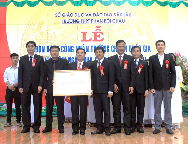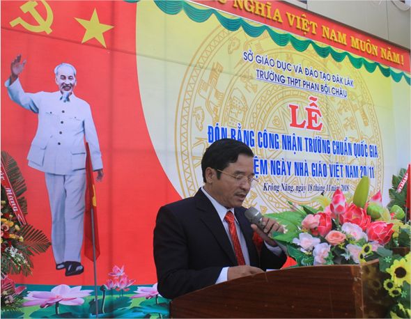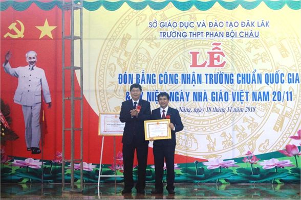 Ông Phạm Đăng Khoa – Giám đốc Sở GDĐT Trao Bằng công nhận đạt chuẩn quốc gia cho tập thể Trường THPT Phan Bội Châu.