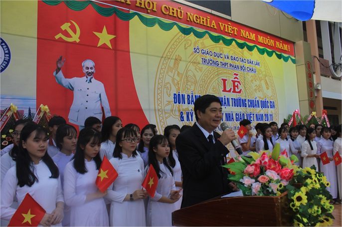 Sáng ngày 18/11/2018, Trường THPT Phan Bội Châu long trọng tổ chức lễ Kỷ niệm 36 năm Ngày Nhà giáo Việt Nam và đón bằng công nhận đạt chuẩn quốc gia. Tham dự buổi lễ có ông Phạm Đăng Khoa – Giám đốc Sở GDĐT cùng lãnh đạo các phòng chuyên môn, nghiệp vụ; đại diện lãnh đạo các cơ quan, ban, ngành, các đơn vị trên địa bàn huyện và toàn thể giáo viên, học sinh Trường THPT Phan Bội Châu.