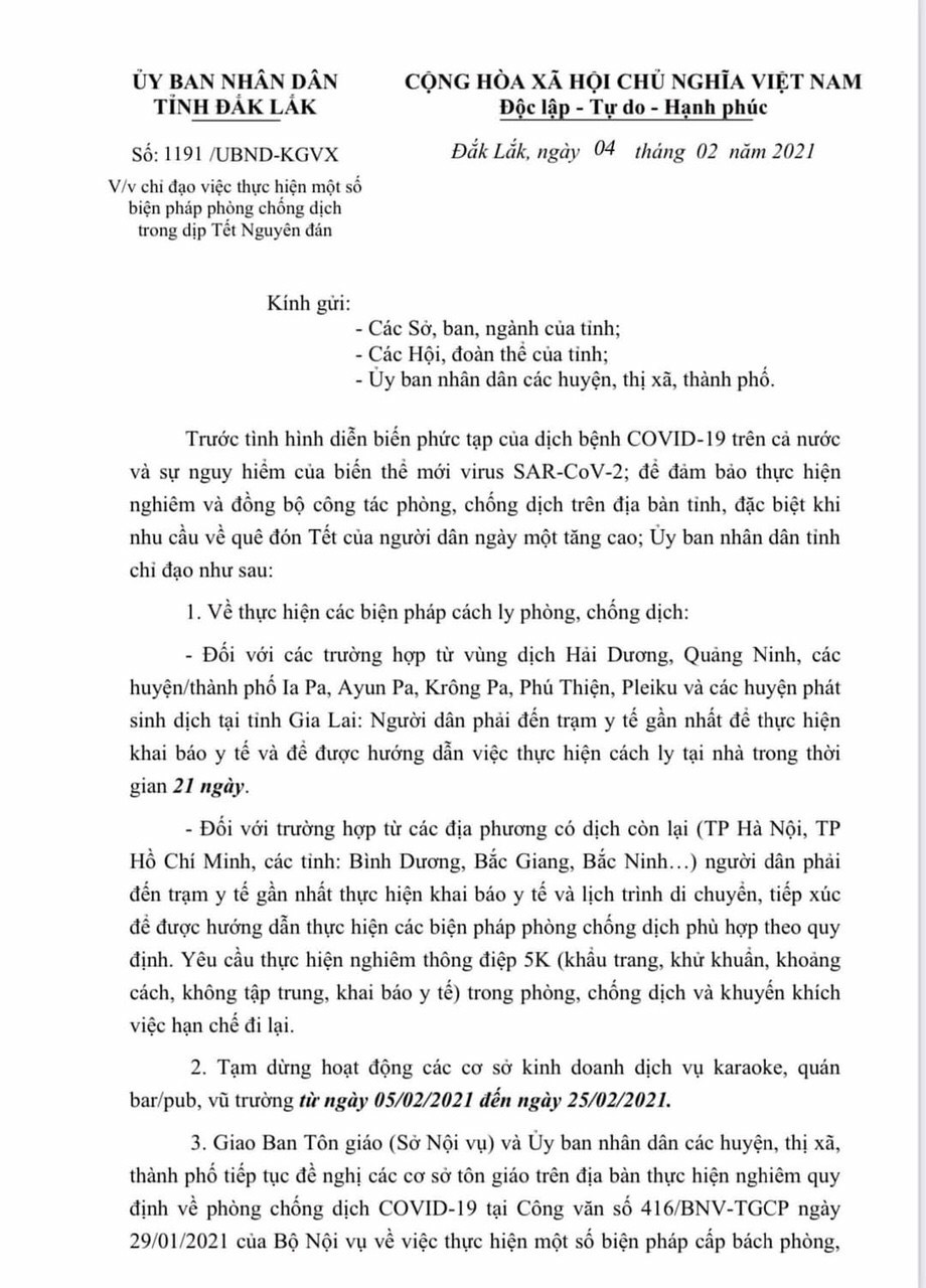 UBND tỉnh: Chỉ đạo thực hiện một số biện pháp phòng chống dịch trong dịp Tết Nguyên đán